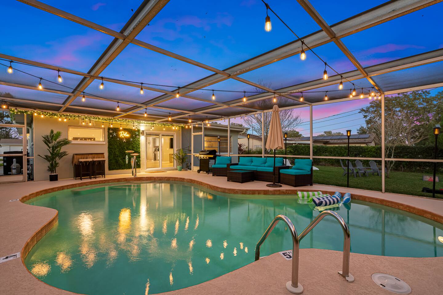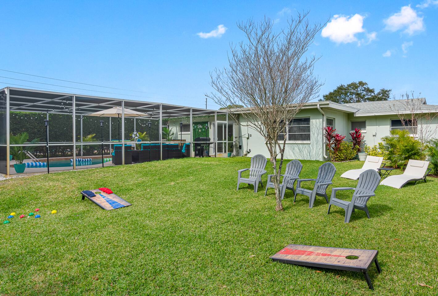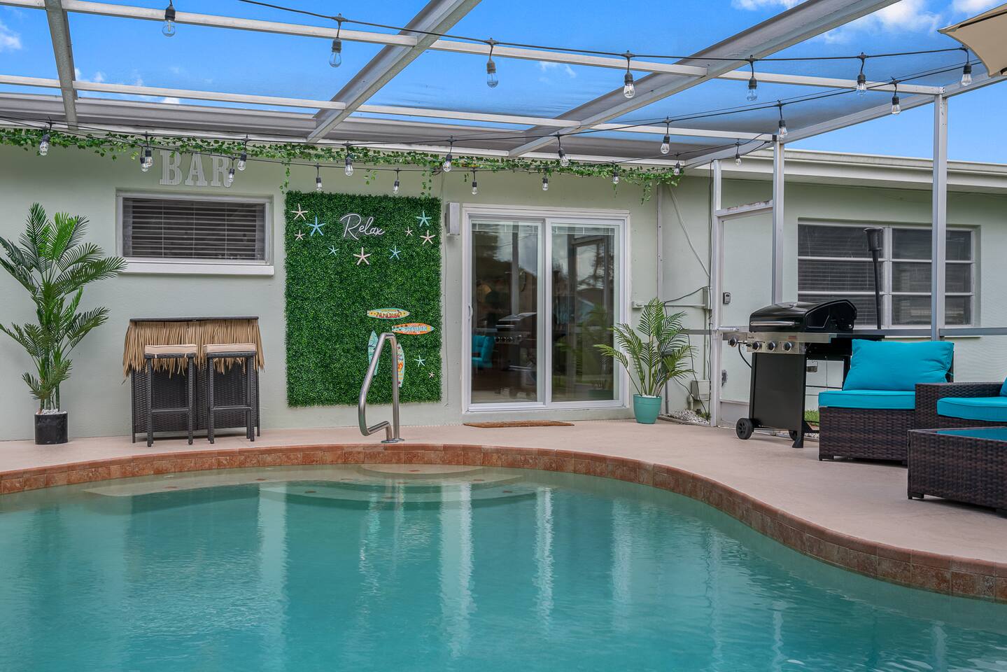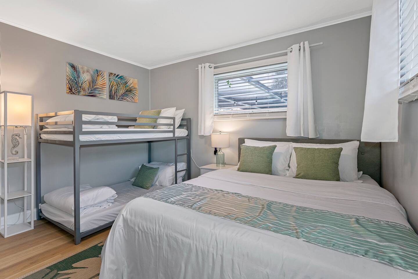 🌴 Paradise Palms was designed with family and friend vacationers in mind, featuring a high-quality renovation, a charming beach-themed design, and an extensive array of premium amenities. We’re dedicated to ensuring every guest has an unforgettable stay! ☀️ KEY FEATURES: ☀︎ 7 beds - 1 king bed, 2 queen beds, 1 bunk bed (twins), 2 queen pull out couches in separate living rooms ☀︎ Private Backyard - Includes HEATED saltwater pool with no additional daily fee, large pool inflatables, cornhole set, bocce ball, outdoor bar, premium sunbathing and patio furniture, adirondack lawn chairs, Char-Broil TRU Infrared Propane grill ☀︎ For the Kids & Toddlers - Pack-n-play crib, 2 high-chairs, kid sippy cups/bowls/plates/utensils, child-lock slider doors, 6.5 ft playpen/baby gate, baby monitor, baby bath, baby changing station, building blocks, outlet covers available ☀︎ For the Beach - 4 Beach Chairs, Umbrella, Drink Cooler, Beach Toys (Shovels, Pails, Boogie Board, Inflatables), and more! ☀︎ Cleaner than a Hotel - Meticulously deep cleaned by our team of professional cleaners between every stay. Cleanliness is VERY important to us. Previous guest reviews will attest to this. ☀︎ Fully stocked coffee bar - Premium espresso machine, Keurig, and coffee maker. Complimentary coffee k-cups, tea, decaf coffee k-cups, coffee grounds, espresso grounds, and many variations of creamers and sugars. ☀︎ Indoor Games - Full-sized ping pong table, board games, giant checkers/tic tac toe ☀︎ Laundry room w/ commercial-grade washer and dryer, detergent, dryer sheets, shout, and drying rack ☀︎ Complimentary sunscreen and aloe ☀︎ 2 dedicated workspaces located within the bedrooms ☀︎ 1 GB high-speed wifi and wifi extender ☀︎ 4 Roku Smart TVs (65" in the living room) with guest-mode activated ☀︎ Complimentary Toiletries - Includes premium shampoo, conditioner, body wash, iron, mini ironing board, and hairdryers ☀︎ Comfortable beds with high-quality linens ☀︎ More than enough towels, toilet paper, paper towels, and extra bed sheets ☀︎ Fully equipped kitchen with modern appliances and some spices ☀︎ Detailed digital guidebook with our personal local recommendations, an effective AI Vacation Planner, and detailed "how-to's"/list of amenities ☀︎ A few minute walk away from the beautiful, 162-acre Eagle Lake Park, a grocery store, restaurants, and more ☀︎ See full list of amenities below! Expect a Five Star stay with us. Here’s what a few guests have said: “One of my favorite Air Bnb stays to date. The rooms were comfy and the place was spacious for me and my family…Everyone loved the fully stocked coffee bar too! Thanks for providing such a beautiful space.” - Jennifer “This place was everything I could have asked for and more. The hosts were very prompt to answer any questions we had. The home was extremely clean and they thought of everything right down to the smallest of details, I couldn't believe they had a set of children's plates/utensils/cups. tons of stuff for the pool and the beach, I didn't have to pack anything.” - Christina “Where to begin…I am a cleaning fanatic and I worry about cleanliness. This house made me feel right at home. Extremely clean, clean linens and towels…The communication was FANTASTIC. I only had one question because the itinerary was so detailed and I had a response right away. We would rent this house again.” - Heather ☆☆ BEDROOMS ☆☆ Master Bedroom – Wake up to the beauty of the Florida sunrise, with the soft glow of morning light streaming through your window and the gentle sway of palm trees just outside. Imagine stepping out of bed and being only moments away from a refreshing dip in your private, heated saltwater pool. Before you head out, indulge in a freshly brewed cup from the fully stocked premium coffee bar, perfectly positioned for your morning routine. The master suite features a luxurious king-size bed, a dedicated workspace with a sleek desk, and a 58” smart TV for your entertainment. Enjoy the convenience of ample closet and drawer space to unpack and make yourself at home, complete with full-length mirrors for trying on your outfits. Built-in outlets in the nightstands make charging your devices a breeze. With your own private en-suite bathroom, featuring a walk-in glass shower and a spacious vanity designed for two, this master bedroom offers a serene retreat where comfort and convenience meet. Second Bedroom – Designed for peaceful relaxation, the second bedroom mirrors the tranquility of the master suite, ensuring your luxury vacation experience begins the moment you open your eyes. This room features a plush queen-size bed, a dedicated desk/workspace for any remote work or quiet moments, full-body mirrors, and ample closet and drawer space to unpack your belongings. Just steps away from the second full bathroom, this room offers both comfort and convenience for a restful stay. Third Bedroom – Perfect for families or groups, the third bedroom offers direct views of the sparkling pool and lush backyard oasis, ensuring you’re reminded of the resort-style luxury just outside. This room is equipped with both a luxury queen-size bed and a fun bunk bed (2 twins), making it ideal for kids or extra guests. The room also includes a closet, luggage racks, and plenty of space to relax and unwind. Each bedroom is thoughtfully equipped with high-quality linens, Roku TVs for entertainment, and nightstands with built-in outlets for easy charging. ☆☆ BATHROOMS ☆☆ The home features two beautifully appointed, beach-themed full bathrooms, each thoughtfully stocked with all the essentials to make your stay as comfortable as possible. You’ll find plush towels, toilet paper, shampoo, conditioner, body wash, hand soap, and a hairdryer—everything you need to feel right at home from the moment you arrive. ☆☆ KITCHEN & DINING ROOM ☆☆ The bright and inviting ki