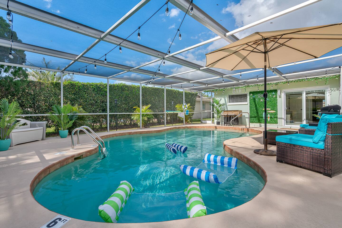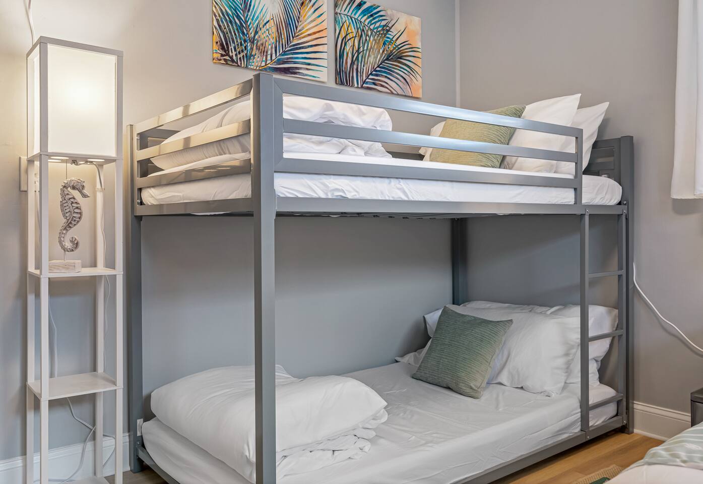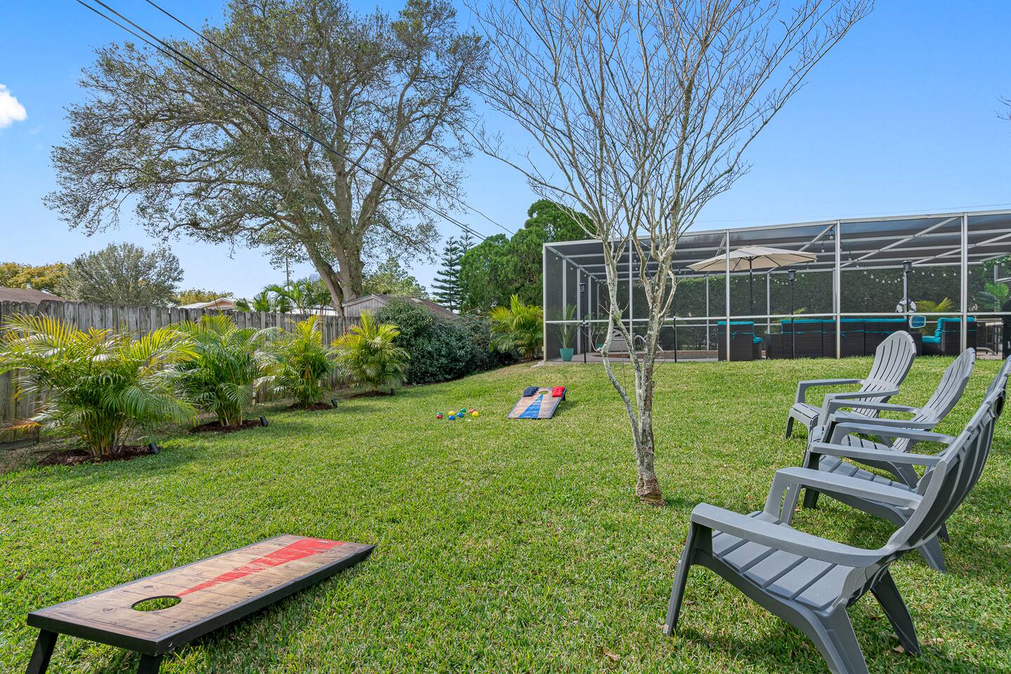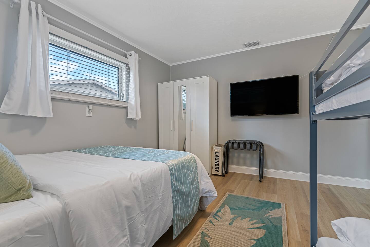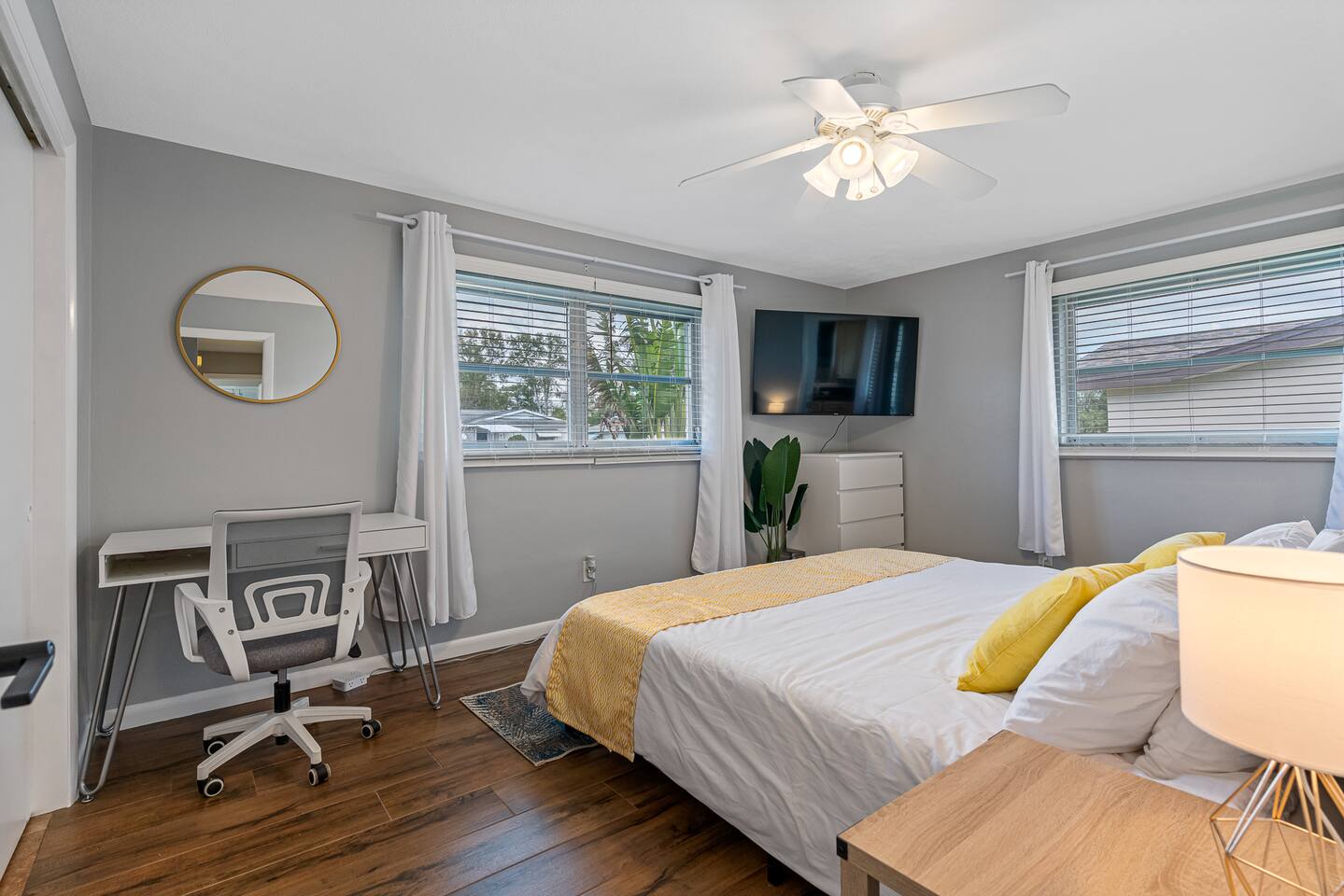 🌴 Paradise Palms was designed with family and friend vacationers in mind, featuring a high-quality renovation, a charming beach-themed design, and an extensive array of premium amenities. We’re dedicated to ensuring every guest has an unforgettable stay! ☀️ KEY FEATURES: ☀︎ 7 beds - 1 king bed, 2 queen beds, 1 bunk bed (twins), 2 queen pull out couches in separate living rooms ☀︎ Private Backyard - Includes HEATED saltwater pool with no additional daily fee, large pool inflatables, cornhole set, bocce ball, outdoor bar, premium sunbathing and patio furniture, adirondack lawn chairs, Char-Broil TRU Infrared Propane grill ☀︎ For the Kids & Toddlers - Pack-n-play crib, 2 high-chairs, kid sippy cups/bowls/plates/utensils, child-lock slider doors, 6.5 ft playpen/baby gate, baby monitor, baby bath, baby changing station, building blocks, outlet covers available ☀︎ For the Beach - 4 Beach Chairs, Umbrella, Drink Cooler, Beach Toys (Shovels, Pails, Boogie Board, Inflatables), and more! ☀︎ Cleaner than a Hotel - Meticulously deep cleaned by our team of professional cleaners between every stay. Cleanliness is VERY important to us. Previous guest reviews will attest to this. ☀︎ Fully stocked coffee bar - Premium espresso machine, Keurig, and coffee maker. Complimentary coffee k-cups, tea, decaf coffee k-cups, coffee grounds, espresso grounds, and many variations of creamers and sugars. ☀︎ Indoor Games - Full-sized ping pong table, board games, giant checkers/tic tac toe ☀︎ Laundry room w/ commercial-grade washer and dryer, detergent, dryer sheets, shout, and drying rack ☀︎ Complimentary sunscreen and aloe ☀︎ 2 dedicated workspaces located within the bedrooms ☀︎ 1 GB high-speed wifi and wifi extender ☀︎ 4 Roku Smart TVs (65" in the living room) with guest-mode activated ☀︎ Complimentary Toiletries - Includes premium shampoo, conditioner, body wash, iron, mini ironing board, and hairdryers ☀︎ Comfortable beds with high-quality linens ☀︎ More than enough towels, toilet paper, paper towels, and extra bed sheets ☀︎ Fully equipped kitchen with modern appliances and some spices ☀︎ Detailed digital guidebook with our personal local recommendations, an effective AI Vacation Planner, and detailed "how-to's"/list of amenities ☀︎ A few minute walk away from the beautiful, 162-acre Eagle Lake Park, a grocery store, restaurants, and more ☀︎ See full list of amenities below! Expect a Five Star stay with us. Here’s what a few guests have said: “One of my favorite Air Bnb stays to date. The rooms were comfy and the place was spacious for me and my family…Everyone loved the fully stocked coffee bar too! Thanks for providing such a beautiful space.” - Jennifer “This place was everything I could have asked for and more. The hosts were very prompt to answer any questions we had. The home was extremely clean and they thought of everything right down to the smallest of details, I couldn't believe they had a set of children's plates/utensils/cups. tons of stuff for the pool and the beach, I didn't have to pack anything.” - Christina “Where to begin…I am a cleaning fanatic and I worry about cleanliness. This house made me feel right at home. Extremely clean, clean linens and towels…The communication was FANTASTIC. I only had one question because the itinerary was so detailed and I had a response right away. We would rent this house again.” - Heather ☆☆ BEDROOMS ☆☆ Master Bedroom – Wake up to the beauty of the Florida sunrise, with the soft glow of morning light streaming through your window and the gentle sway of palm trees just outside. Imagine stepping out of bed and being only moments away from a refreshing dip in your private, heated saltwater pool. Before you head out, indulge in a freshly brewed cup from the fully stocked premium coffee bar, perfectly positioned for your morning routine. The master suite features a luxurious king-size bed, a dedicated workspace with a sleek desk, and a 58” smart TV for your entertainment. Enjoy the convenience of ample closet and drawer space to unpack and make yourself at home, complete with full-length mirrors for trying on your outfits. Built-in outlets in the nightstands make charging your devices a breeze. With your own private en-suite bathroom, featuring a walk-in glass shower and a spacious vanity designed for two, this master bedroom offers a serene retreat where comfort and convenience meet. Second Bedroom – Designed for peaceful relaxation, the second bedroom mirrors the tranquility of the master suite, ensuring your luxury vacation experience begins the moment you open your eyes. This room features a plush queen-size bed, a dedicated desk/workspace for any remote work or quiet moments, full-body mirrors, and ample closet and drawer space to unpack your belongings. Just steps away from the second full bathroom, this room offers both comfort and convenience for a restful stay. Third Bedroom – Perfect for families or groups, the third bedroom offers direct views of the sparkling pool and lush backyard oasis, ensuring you’re reminded of the resort-style luxury just outside. This room is equipped with both a luxury queen-size bed and a fun bunk bed (2 twins), making it ideal for kids or extra guests. The room also includes a closet, luggage racks, and plenty of space to relax and unwind. Each bedroom is thoughtfully equipped with high-quality linens, Roku TVs for entertainment, and nightstands with built-in outlets for easy charging. ☆☆ BATHROOMS ☆☆ The home features two beautifully appointed, beach-themed full bathrooms, each thoughtfully stocked with all the essentials to make your stay as comfortable as possible. You’ll find plush towels, toilet paper, shampoo, conditioner, body wash, hand soap, and a hairdryer—everything you need to feel right at home from the moment you arrive. ☆☆ KITCHEN & DINING ROOM ☆☆ The bright and inviting ki