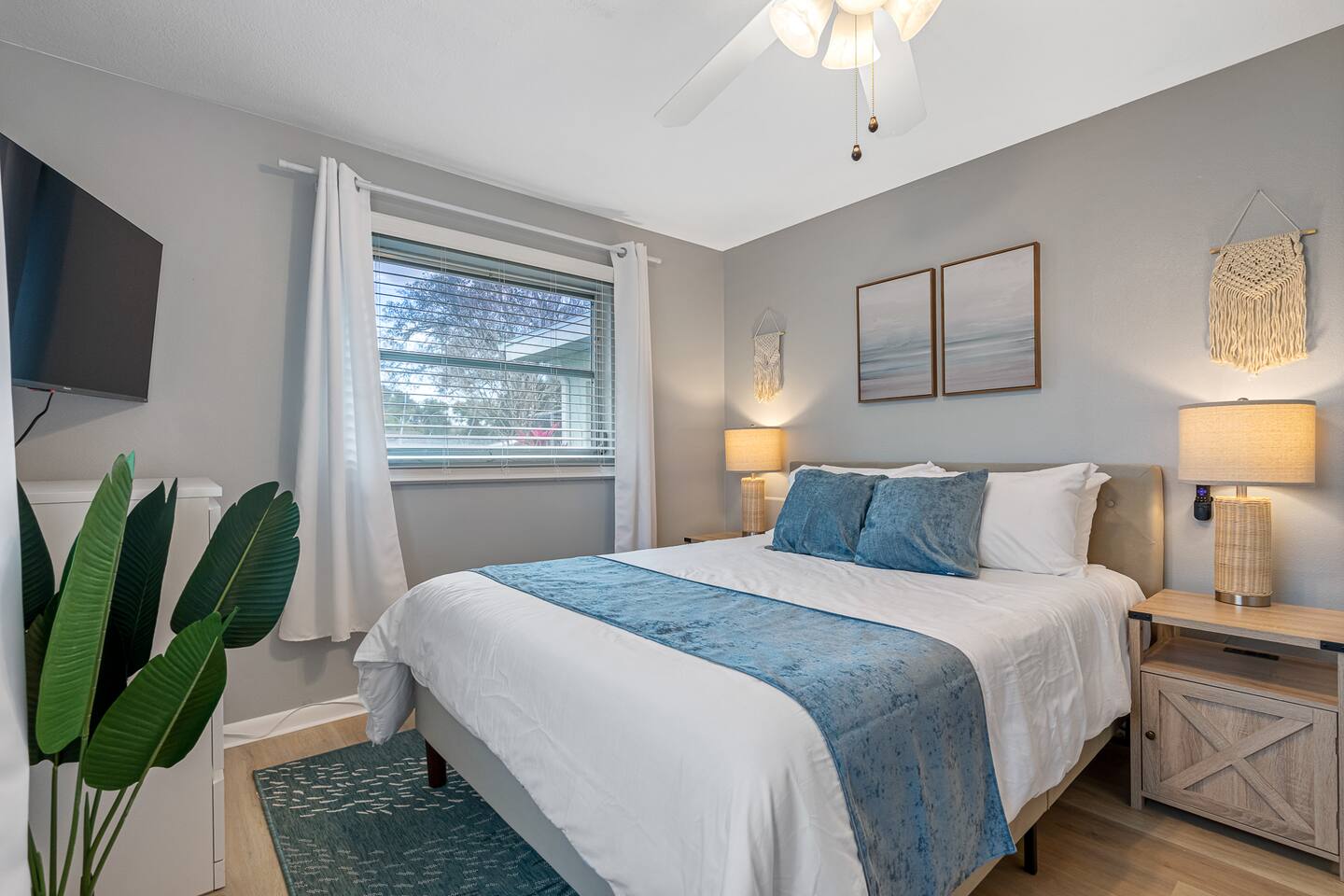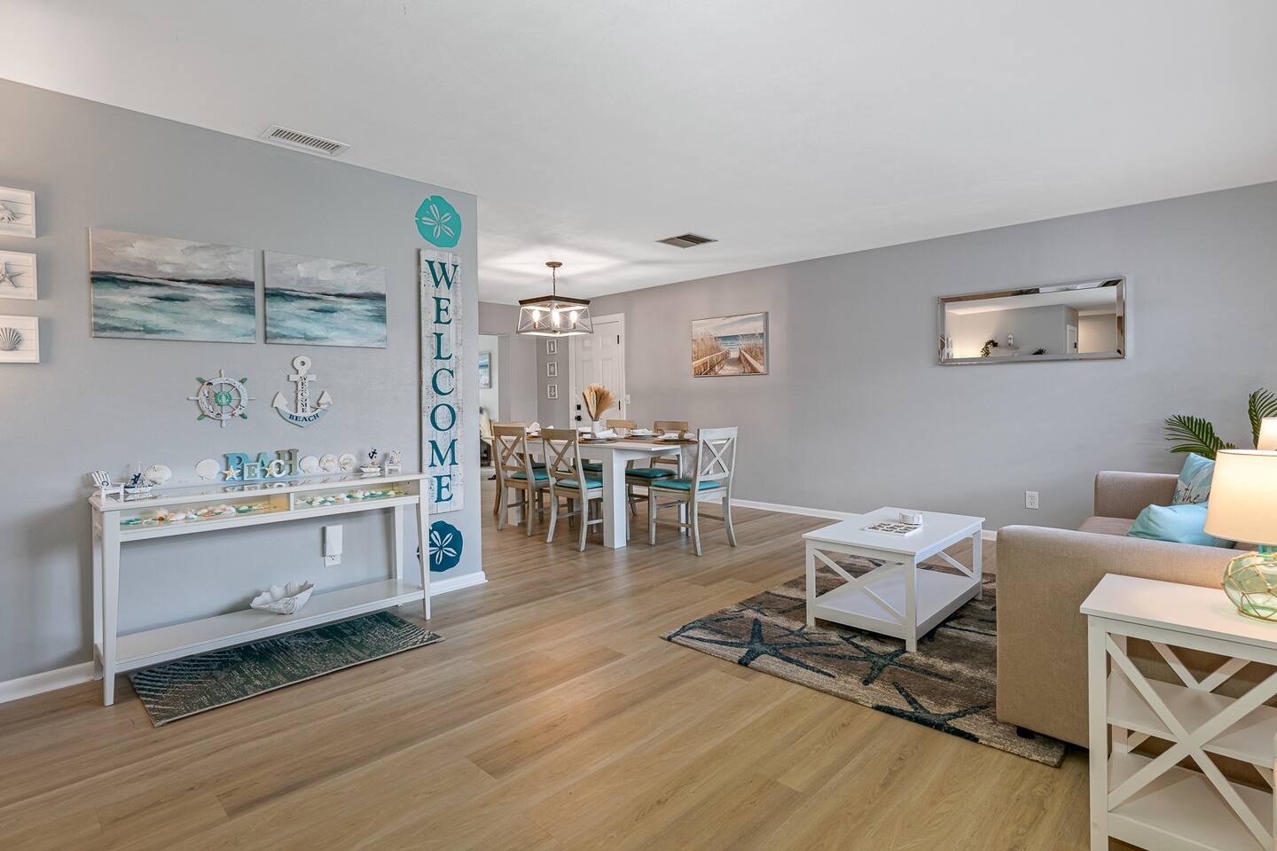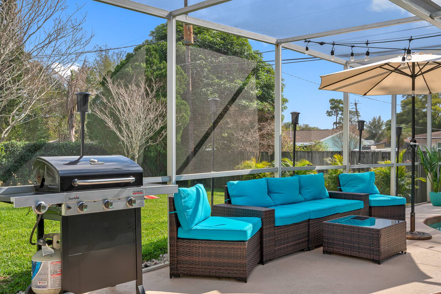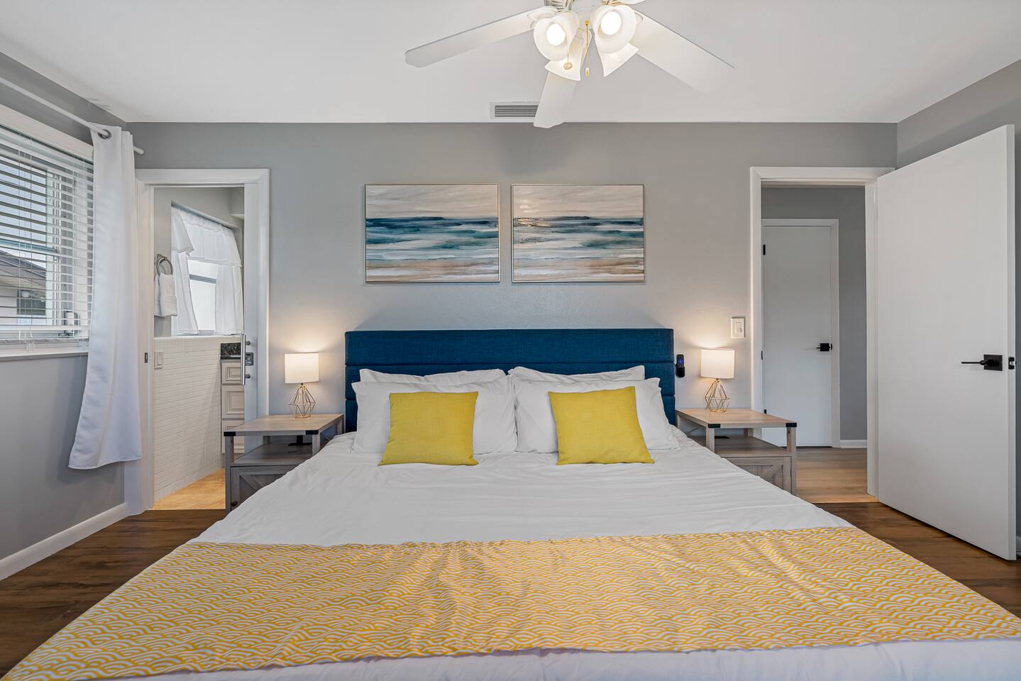 🌴 Paradise Palms was designed with family and friend vacationers in mind, featuring a high-quality renovation, a charming beach-themed design, and an extensive array of premium amenities. We’re dedicated to ensuring every guest has an unforgettable stay! ☀️ KEY FEATURES: ☀︎ 7 beds - 1 king bed, 2 queen beds, 1 bunk bed (twins), 2 queen pull out couches in separate living rooms ☀︎ Private Backyard - Includes HEATED saltwater pool with no additional daily fee, large pool inflatables, cornhole set, bocce ball, outdoor bar, premium sunbathing and patio furniture, adirondack lawn chairs, Char-Broil TRU Infrared Propane grill ☀︎ For the Kids & Toddlers - Pack-n-play crib, 2 high-chairs, kid sippy cups/bowls/plates/utensils, child-lock slider doors, 6.5 ft playpen/baby gate, baby monitor, baby bath, baby changing station, building blocks, outlet covers available ☀︎ For the Beach - 4 Beach Chairs, Umbrella, Drink Cooler, Beach Toys (Shovels, Pails, Boogie Board, Inflatables), and more! ☀︎ Cleaner than a Hotel - Meticulously deep cleaned by our team of professional cleaners between every stay. Cleanliness is VERY important to us. Previous guest reviews will attest to this. ☀︎ Fully stocked coffee bar - Premium espresso machine, Keurig, and coffee maker. Complimentary coffee k-cups, tea, decaf coffee k-cups, coffee grounds, espresso grounds, and many variations of creamers and sugars. ☀︎ Indoor Games - Full-sized ping pong table, board games, giant checkers/tic tac toe ☀︎ Laundry room w/ commercial-grade washer and dryer, detergent, dryer sheets, shout, and drying rack ☀︎ Complimentary sunscreen and aloe ☀︎ 2 dedicated workspaces located within the bedrooms ☀︎ 1 GB high-speed wifi and wifi extender ☀︎ 4 Roku Smart TVs (65" in the living room) with guest-mode activated ☀︎ Complimentary Toiletries - Includes premium shampoo, conditioner, body wash, iron, mini ironing board, and hairdryers ☀︎ Comfortable beds with high-quality linens ☀︎ More than enough towels, toilet paper, paper towels, and extra bed sheets ☀︎ Fully equipped kitchen with modern appliances and some spices ☀︎ Detailed digital guidebook with our personal local recommendations, an effective AI Vacation Planner, and detailed "how-to's"/list of amenities ☀︎ A few minute walk away from the beautiful, 162-acre Eagle Lake Park, a grocery store, restaurants, and more ☀︎ See full list of amenities below! Expect a Five Star stay with us. Here’s what a few guests have said: “One of my favorite Air Bnb stays to date. The rooms were comfy and the place was spacious for me and my family…Everyone loved the fully stocked coffee bar too! Thanks for providing such a beautiful space.” - Jennifer “This place was everything I could have asked for and more. The hosts were very prompt to answer any questions we had. The home was extremely clean and they thought of everything right down to the smallest of details, I couldn't believe they had a set of children's plates/utensils/cups. tons of stuff for the pool and the beach, I didn't have to pack anything.” - Christina “Where to begin…I am a cleaning fanatic and I worry about cleanliness. This house made me feel right at home. Extremely clean, clean linens and towels…The communication was FANTASTIC. I only had one question because the itinerary was so detailed and I had a response right away. We would rent this house again.” - Heather ☆☆ BEDROOMS ☆☆ Master Bedroom – Wake up to the beauty of the Florida sunrise, with the soft glow of morning light streaming through your window and the gentle sway of palm trees just outside. Imagine stepping out of bed and being only moments away from a refreshing dip in your private, heated saltwater pool. Before you head out, indulge in a freshly brewed cup from the fully stocked premium coffee bar, perfectly positioned for your morning routine. The master suite features a luxurious king-size bed, a dedicated workspace with a sleek desk, and a 58” smart TV for your entertainment. Enjoy the convenience of ample closet and drawer space to unpack and make yourself at home, complete with full-length mirrors for trying on your outfits. Built-in outlets in the nightstands make charging your devices a breeze. With your own private en-suite bathroom, featuring a walk-in glass shower and a spacious vanity designed for two, this master bedroom offers a serene retreat where comfort and convenience meet. Second Bedroom – Designed for peaceful relaxation, the second bedroom mirrors the tranquility of the master suite, ensuring your luxury vacation experience begins the moment you open your eyes. This room features a plush queen-size bed, a dedicated desk/workspace for any remote work or quiet moments, full-body mirrors, and ample closet and drawer space to unpack your belongings. Just steps away from the second full bathroom, this room offers both comfort and convenience for a restful stay. Third Bedroom – Perfect for families or groups, the third bedroom offers direct views of the sparkling pool and lush backyard oasis, ensuring you’re reminded of the resort-style luxury just outside. This room is equipped with both a luxury queen-size bed and a fun bunk bed (2 twins), making it ideal for kids or extra guests. The room also includes a closet, luggage racks, and plenty of space to relax and unwind. Each bedroom is thoughtfully equipped with high-quality linens, Roku TVs for entertainment, and nightstands with built-in outlets for easy charging. ☆☆ BATHROOMS ☆☆ The home features two beautifully appointed, beach-themed full bathrooms, each thoughtfully stocked with all the essentials to make your stay as comfortable as possible. You’ll find plush towels, toilet paper, shampoo, conditioner, body wash, hand soap, and a hairdryer—everything you need to feel right at home from the moment you arrive. ☆☆ KITCHEN & DINING ROOM ☆☆ The bright and inviting ki