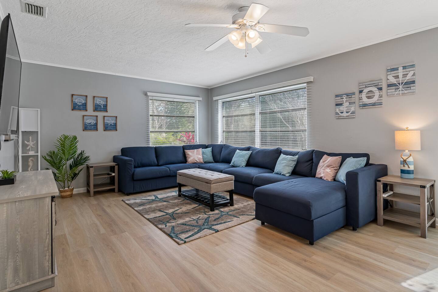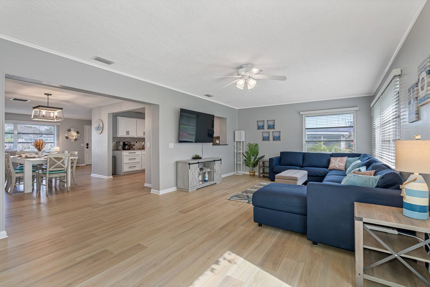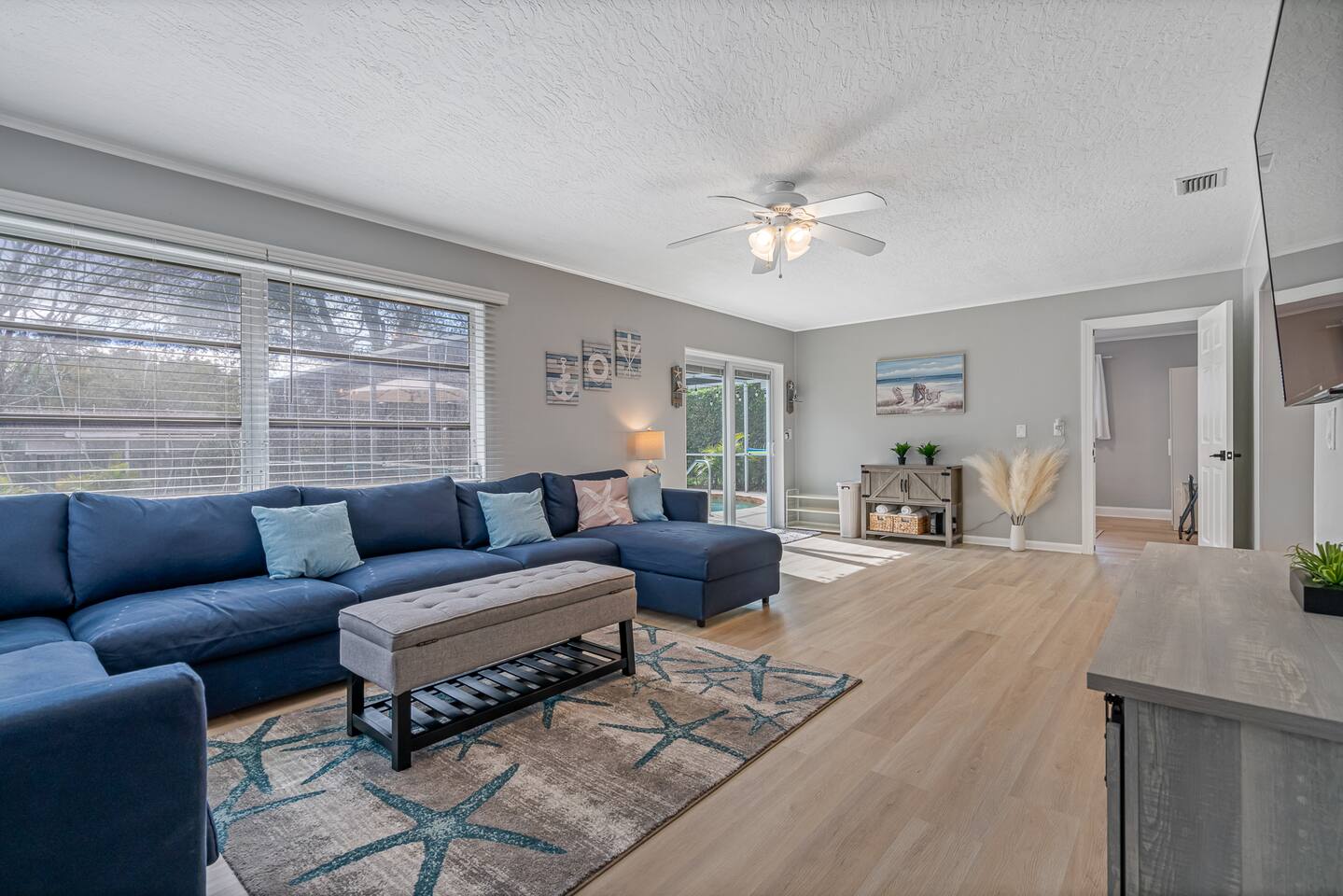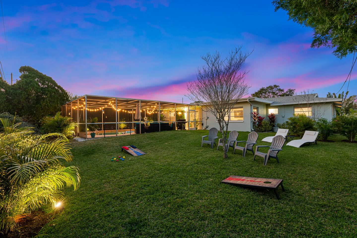 🌴 Paradise Palms was designed with family and friend vacationers in mind, featuring a high-quality renovation, a charming beach-themed design, and an extensive array of premium amenities. We’re dedicated to ensuring every guest has an unforgettable stay! ☀️ KEY FEATURES: ☀︎ 7 beds - 1 king bed, 2 queen beds, 1 bunk bed (twins), 2 queen pull out couches in separate living rooms ☀︎ Private Backyard - Includes HEATED saltwater pool with no additional daily fee, large pool inflatables, cornhole set, bocce ball, outdoor bar, premium sunbathing and patio furniture, adirondack lawn chairs, Char-Broil TRU Infrared Propane grill ☀︎ For the Kids & Toddlers - Pack-n-play crib, 2 high-chairs, kid sippy cups/bowls/plates/utensils, child-lock slider doors, 6.5 ft playpen/baby gate, baby monitor, baby bath, baby changing station, building blocks, outlet covers available ☀︎ For the Beach - 4 Beach Chairs, Umbrella, Drink Cooler, Beach Toys (Shovels, Pails, Boogie Board, Inflatables), and more! ☀︎ Cleaner than a Hotel - Meticulously deep cleaned by our team of professional cleaners between every stay. Cleanliness is VERY important to us. Previous guest reviews will attest to this. ☀︎ Fully stocked coffee bar - Premium espresso machine, Keurig, and coffee maker. Complimentary coffee k-cups, tea, decaf coffee k-cups, coffee grounds, espresso grounds, and many variations of creamers and sugars. ☀︎ Indoor Games - Full-sized ping pong table, board games, giant checkers/tic tac toe ☀︎ Laundry room w/ commercial-grade washer and dryer, detergent, dryer sheets, shout, and drying rack ☀︎ Complimentary sunscreen and aloe ☀︎ 2 dedicated workspaces located within the bedrooms ☀︎ 1 GB high-speed wifi and wifi extender ☀︎ 4 Roku Smart TVs (65" in the living room) with guest-mode activated ☀︎ Complimentary Toiletries - Includes premium shampoo, conditioner, body wash, iron, mini ironing board, and hairdryers ☀︎ Comfortable beds with high-quality linens ☀︎ More than enough towels, toilet paper, paper towels, and extra bed sheets ☀︎ Fully equipped kitchen with modern appliances and some spices ☀︎ Detailed digital guidebook with our personal local recommendations, an effective AI Vacation Planner, and detailed "how-to's"/list of amenities ☀︎ A few minute walk away from the beautiful, 162-acre Eagle Lake Park, a grocery store, restaurants, and more ☀︎ See full list of amenities below! Expect a Five Star stay with us. Here’s what a few guests have said: “One of my favorite Air Bnb stays to date. The rooms were comfy and the place was spacious for me and my family…Everyone loved the fully stocked coffee bar too! Thanks for providing such a beautiful space.” - Jennifer “This place was everything I could have asked for and more. The hosts were very prompt to answer any questions we had. The home was extremely clean and they thought of everything right down to the smallest of details, I couldn't believe they had a set of children's plates/utensils/cups. tons of stuff for the pool and the beach, I didn't have to pack anything.” - Christina “Where to begin…I am a cleaning fanatic and I worry about cleanliness. This house made me feel right at home. Extremely clean, clean linens and towels…The communication was FANTASTIC. I only had one question because the itinerary was so detailed and I had a response right away. We would rent this house again.” - Heather ☆☆ BEDROOMS ☆☆ Master Bedroom – Wake up to the beauty of the Florida sunrise, with the soft glow of morning light streaming through your window and the gentle sway of palm trees just outside. Imagine stepping out of bed and being only moments away from a refreshing dip in your private, heated saltwater pool. Before you head out, indulge in a freshly brewed cup from the fully stocked premium coffee bar, perfectly positioned for your morning routine. The master suite features a luxurious king-size bed, a dedicated workspace with a sleek desk, and a 58” smart TV for your entertainment. Enjoy the convenience of ample closet and drawer space to unpack and make yourself at home, complete with full-length mirrors for trying on your outfits. Built-in outlets in the nightstands make charging your devices a breeze. With your own private en-suite bathroom, featuring a walk-in glass shower and a spacious vanity designed for two, this master bedroom offers a serene retreat where comfort and convenience meet. Second Bedroom – Designed for peaceful relaxation, the second bedroom mirrors the tranquility of the master suite, ensuring your luxury vacation experience begins the moment you open your eyes. This room features a plush queen-size bed, a dedicated desk/workspace for any remote work or quiet moments, full-body mirrors, and ample closet and drawer space to unpack your belongings. Just steps away from the second full bathroom, this room offers both comfort and convenience for a restful stay. Third Bedroom – Perfect for families or groups, the third bedroom offers direct views of the sparkling pool and lush backyard oasis, ensuring you’re reminded of the resort-style luxury just outside. This room is equipped with both a luxury queen-size bed and a fun bunk bed (2 twins), making it ideal for kids or extra guests. The room also includes a closet, luggage racks, and plenty of space to relax and unwind. Each bedroom is thoughtfully equipped with high-quality linens, Roku TVs for entertainment, and nightstands with built-in outlets for easy charging. ☆☆ BATHROOMS ☆☆ The home features two beautifully appointed, beach-themed full bathrooms, each thoughtfully stocked with all the essentials to make your stay as comfortable as possible. You’ll find plush towels, toilet paper, shampoo, conditioner, body wash, hand soap, and a hairdryer—everything you need to feel right at home from the moment you arrive. ☆☆ KITCHEN & DINING ROOM ☆☆ The bright and inviting ki